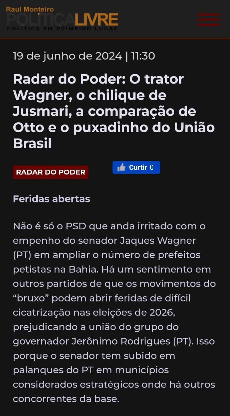 Algumas legendas que integram a base aliada do lulopetismo querem o PT crescendo igual a rabo de cavalo. O PSD é o exemplo-mor. Como não bastasse toda articulação para defenestrar à pré-candidatura de Geraldo Simões a prefeito de Itabuna, busca o apoio do governador Jerônimo Rodrigues a Bento Lima, nome indicado pelo prefeito de Ilhéus, Mário Alexandre (PSD), para disputar o Palácio Paranaguá, dando um chega pra lá na neopetista Adélia Pinheiro. Sem dúvida, uma missão bastante complicada. Adélia tem dois invejáveis padrinhos políticos : ministro Rui Costa e o senador Jaques Wagner. O melhor conselho para o PSD é deixar a "gulodice" política de lado, sob pena de engasgar com a própria esperteza.