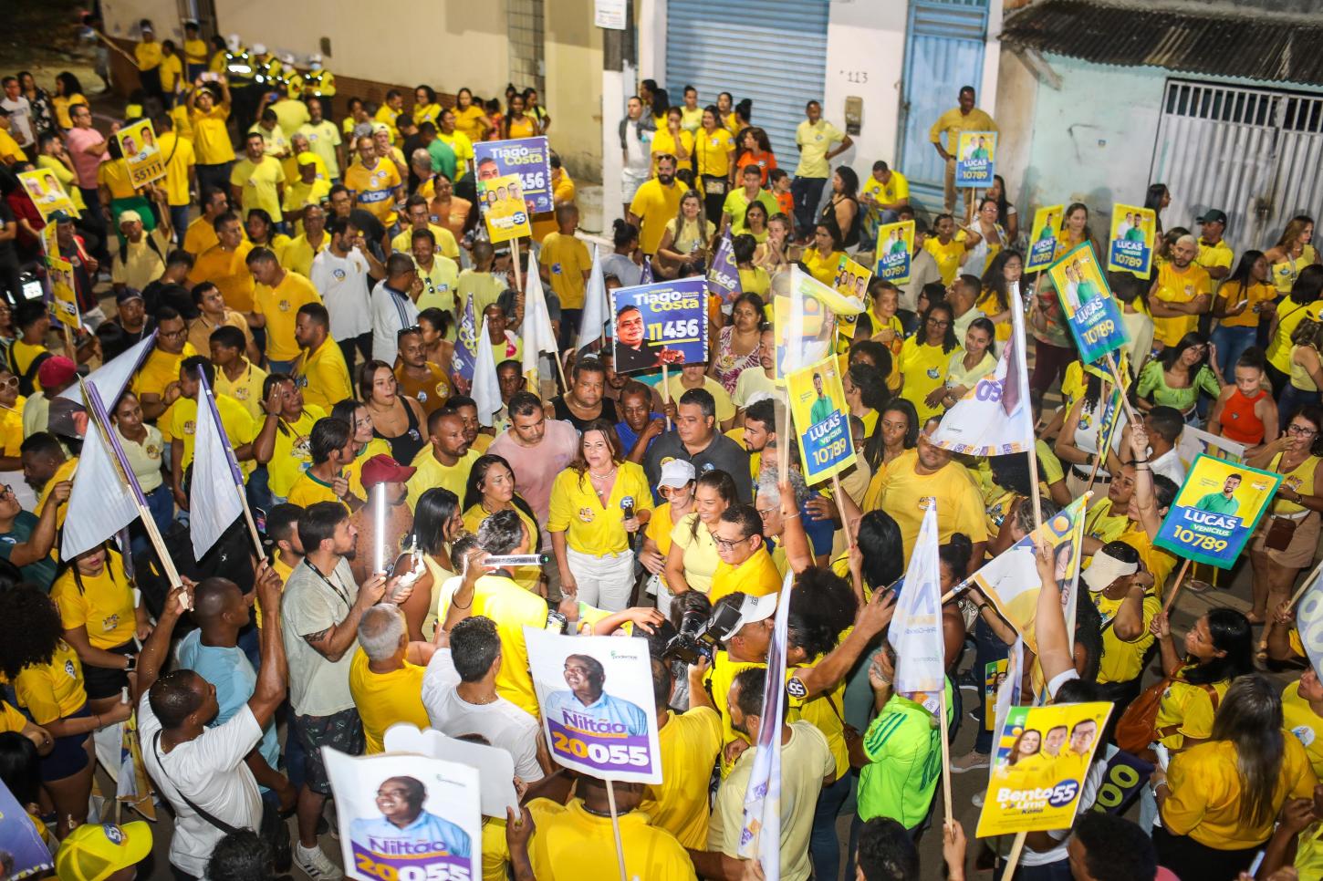 Nesta quarta-feira (21), o candidato à prefeitura de Ilhéus, Bento Lima (PSD), caminhou pelas ruas do bairro Salobrinho, acompanhado por sua vice, a Missionária Kátia Ribeiro (Agir), pelo prefeito Mário Alexandre (PSD) e pela deputada estadual Soane Galvão (PSB). A caminhada contou com a presença de centenas de apoiadores vestidos de amarelo, símbolo da campanha. A concentração ocorreu na praça principal, onde a “onda amarela” mostrou a força do movimento.